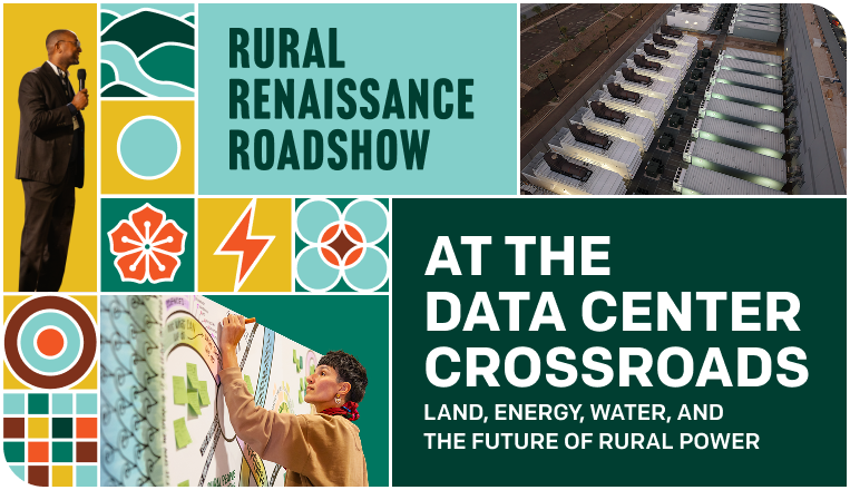 Groundswell’s Rural Renaissance Roadshow brings rural leaders together to spark ideas, build partnerships, and bring real resources home. Save the Date for Nov. 4-6 and join community, energy, tech, and policy leaders “at the Data Center Crossroads” to address hard questions and explore the future of rural power.